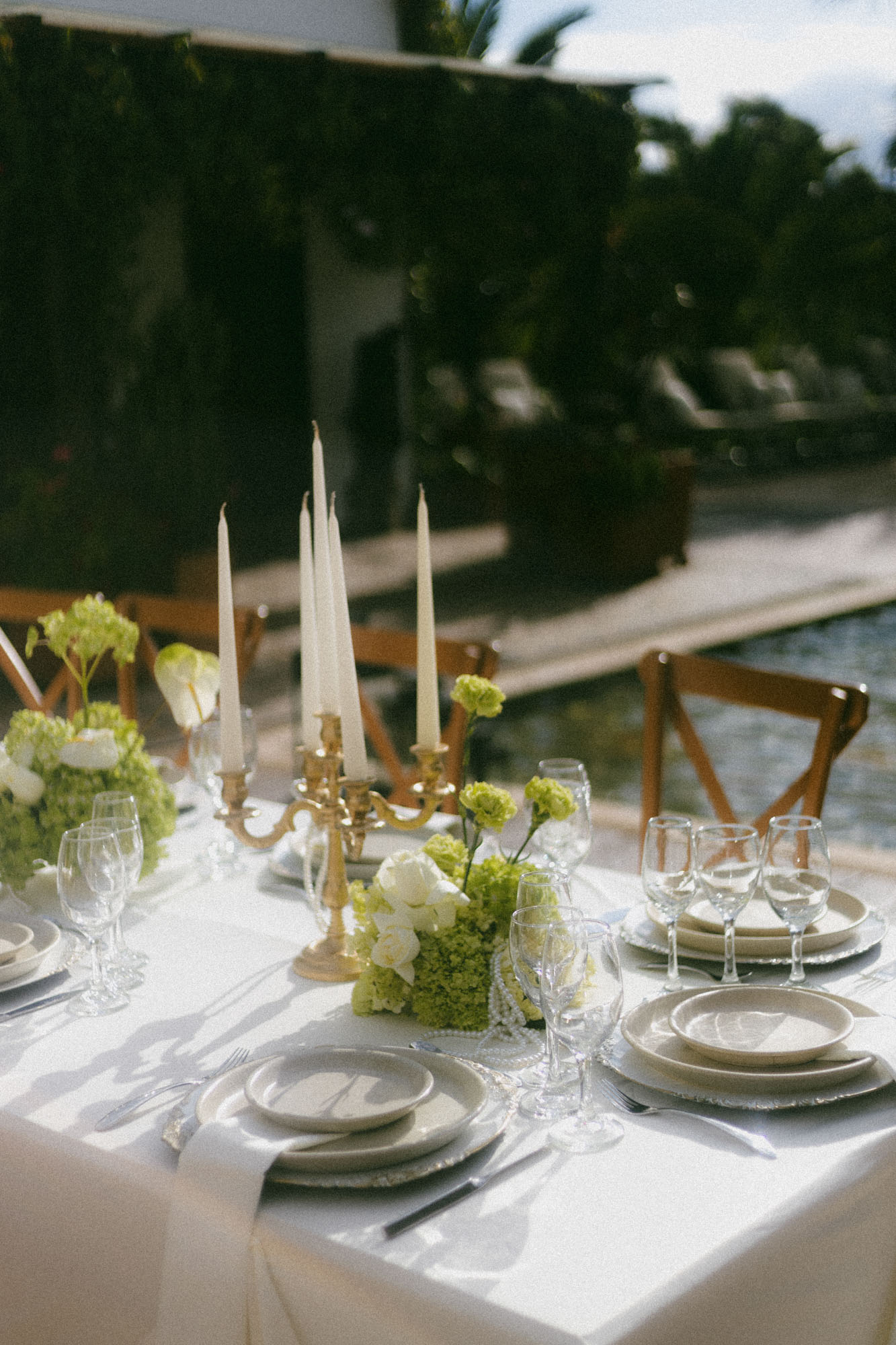 Esta propuesta partió de una sensibilidad europea: mesas con presencia, velas estilizadas, arquitectura visible y una lectura visual donde la sofisticación no dependiera del exceso.